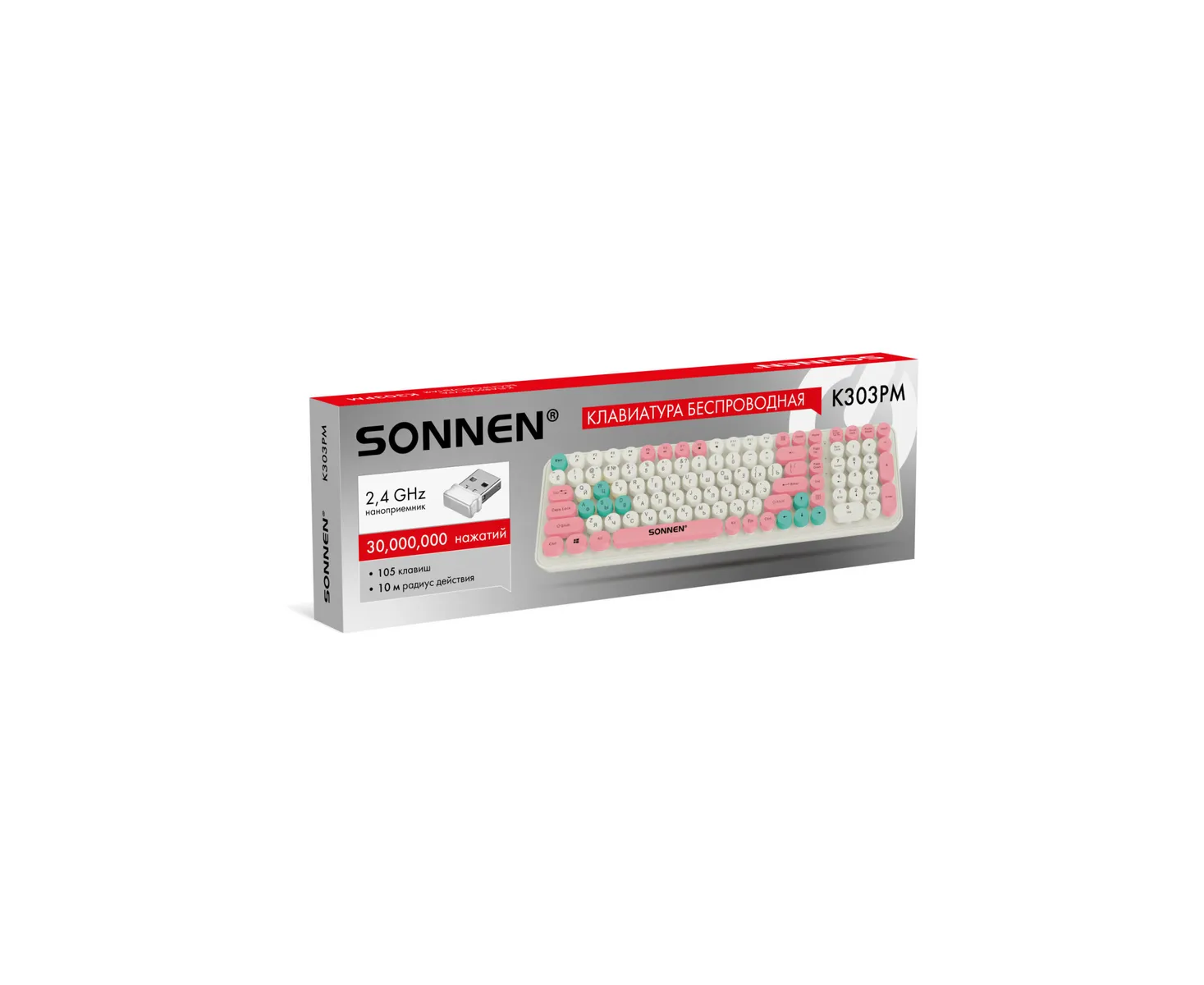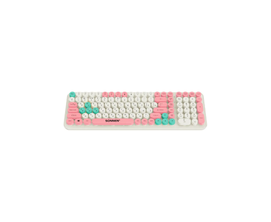 Клавиатура беспроводная SONNEN K303PM (513977) USB, 105 клавиш слоновая кость/розовый/мятный