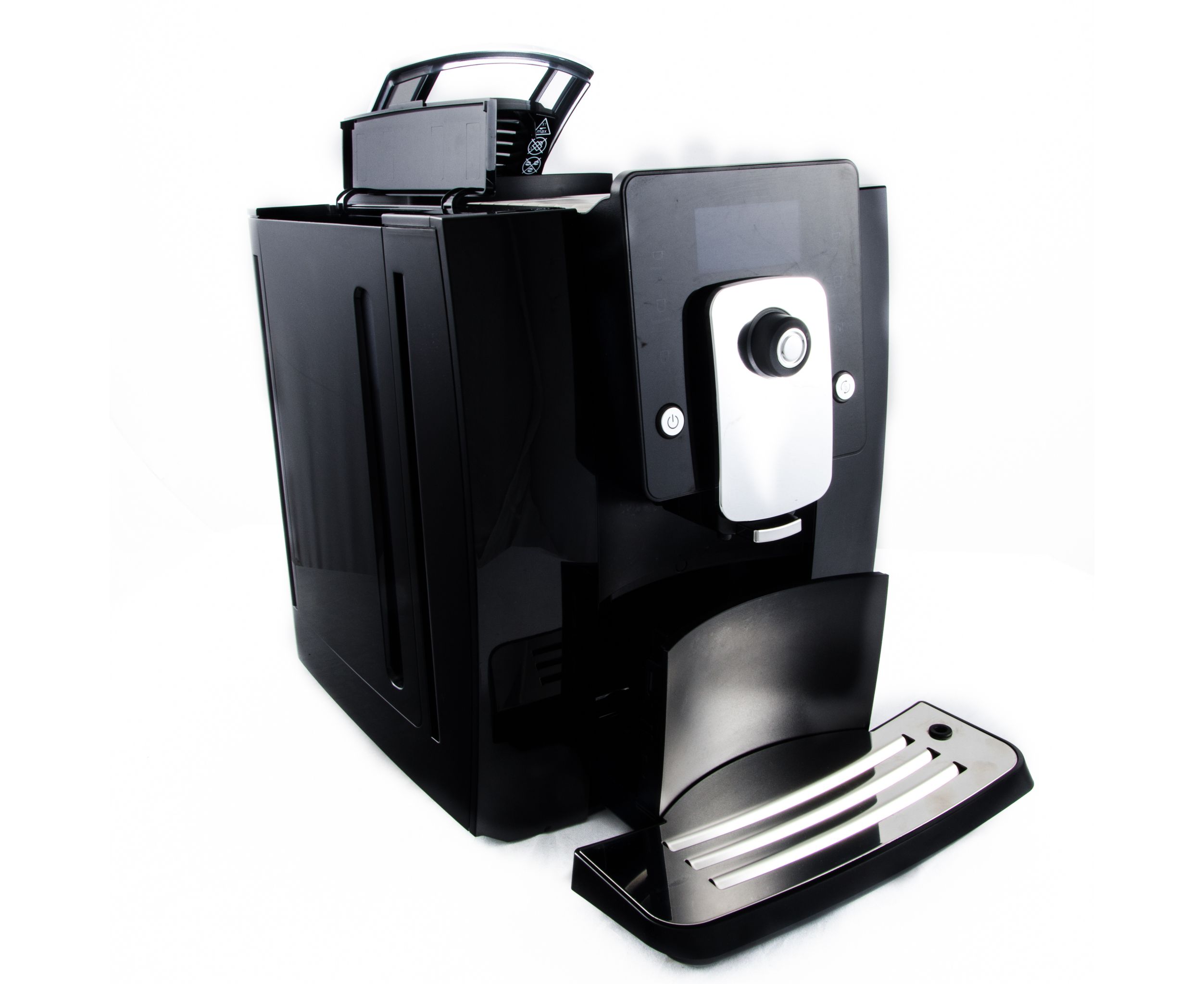 Машина может приготовить капучино с помощью одной кнопки и оснащена LCD-дисплеем и поворотным регулятором для выбора помола, крепости кофе, температуры воды, объема кофе, а также объема, температуры и текстуры молока.