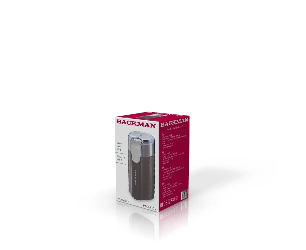 Кофемолка BACKMAN BM-CGR 605 - это устройство, которое станет незаменимым помощником на вашей кухне. С его помощью вы сможете быстро и качественно измельчить кофейные зерна, чтобы приготовить ваш любимый напиток.