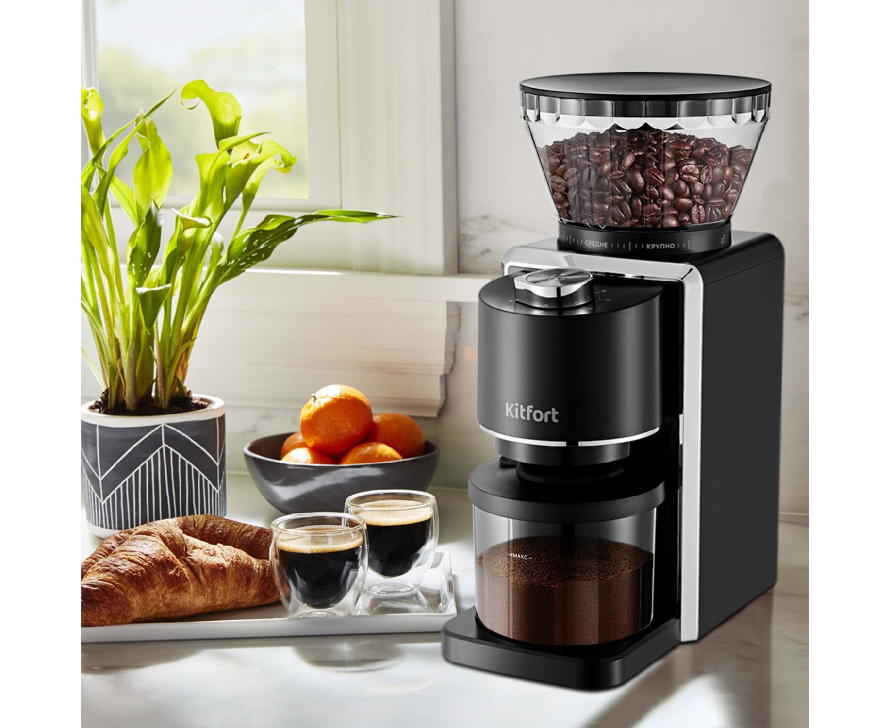 Кофемолка Kitfort КТ-787 черный/серебристый