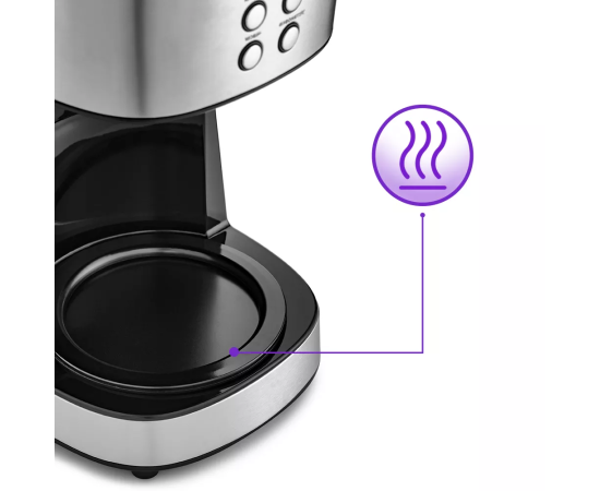 По окончании приготовления кофеварка перейдёт в режим подогрева. Платформа с подогревом, на которой стоит кофейник с готовым кофе, будет горячей в течение 40 минут, затем кофеварка выключится.