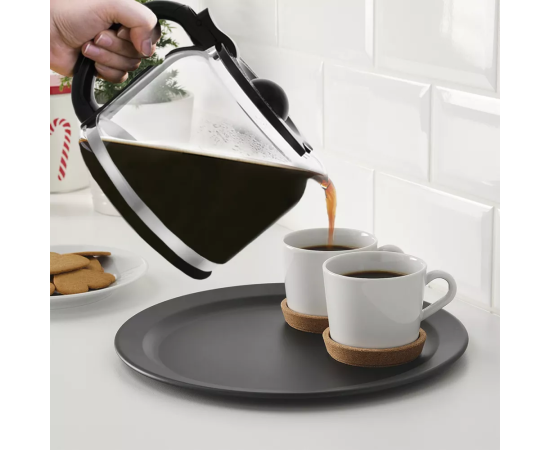 Резервуар ёмкостью 1,6 л позволяет за один раз приготовить кофе на 12 чашек ёмкостью 130 мл. Корпус кофейника прозрачный, поэтому вы всегда можете видеть, сколько кофе еще осталось.