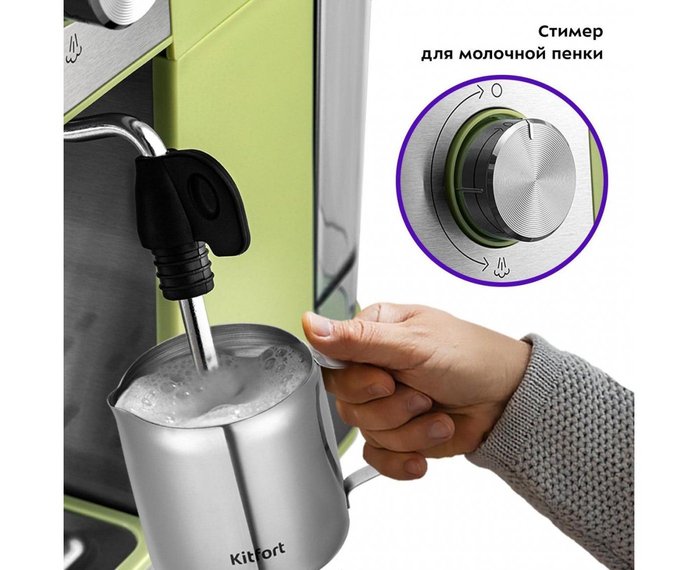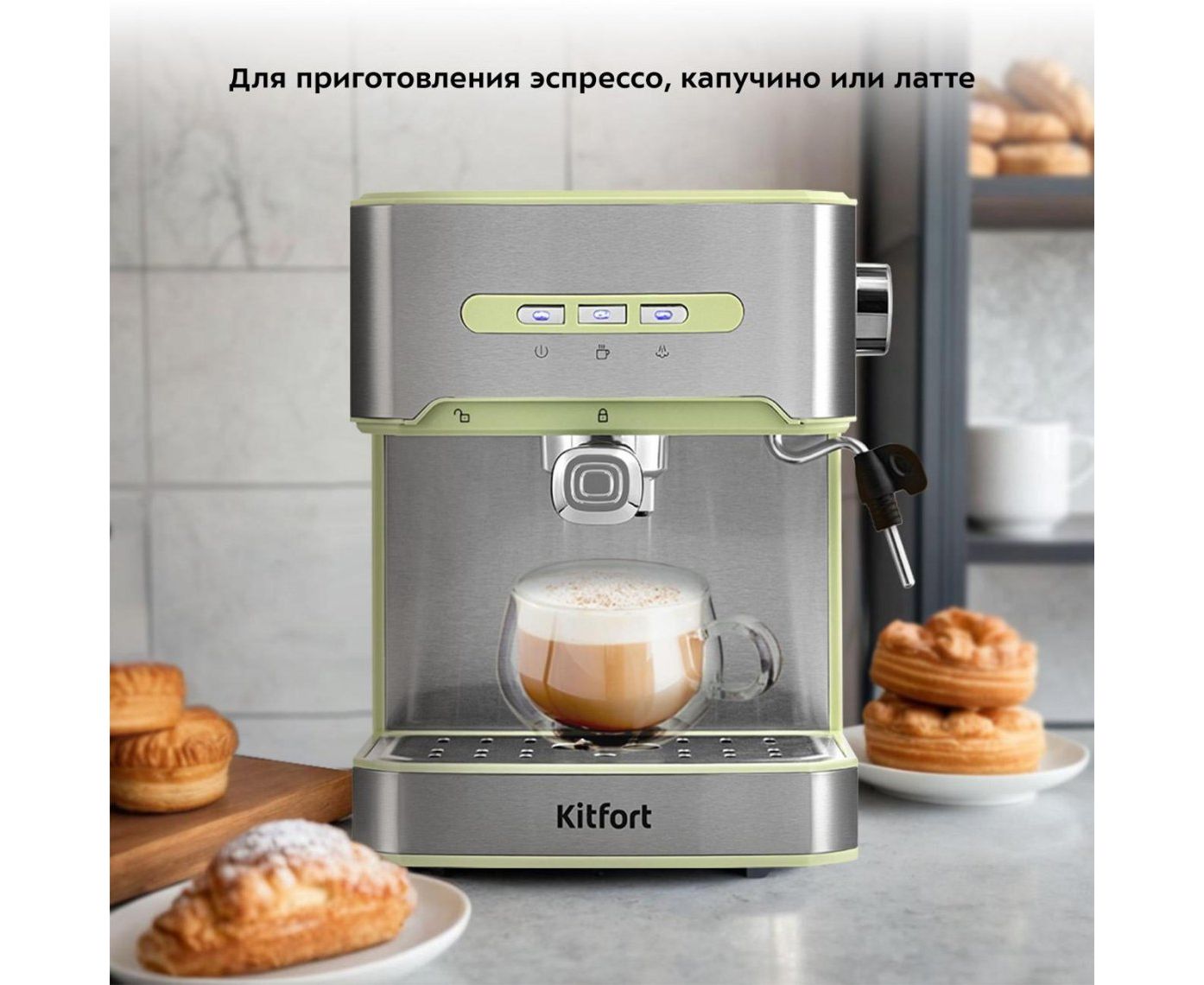 Кофеварка KitFort КТ-7442 зеленый/нерж рожковая