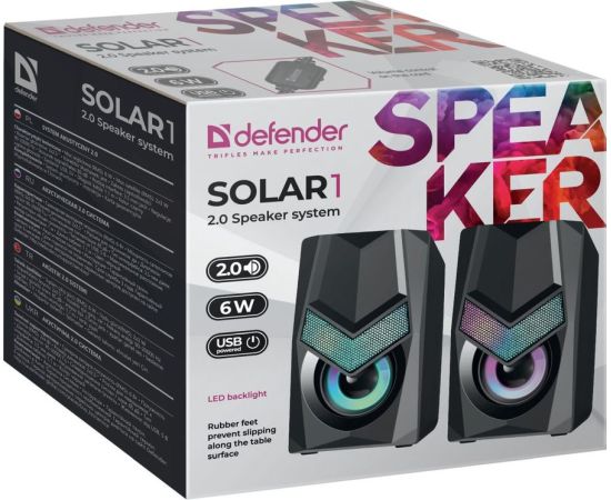 Акустическая система 2.0 DEFENDER Solar 1 6Вт, подсветка, питание от USB 65401
