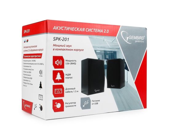 Gembird SPK-201, МДФ, черный ,2х2,5 Вт, регулятор громкости, USB-питание