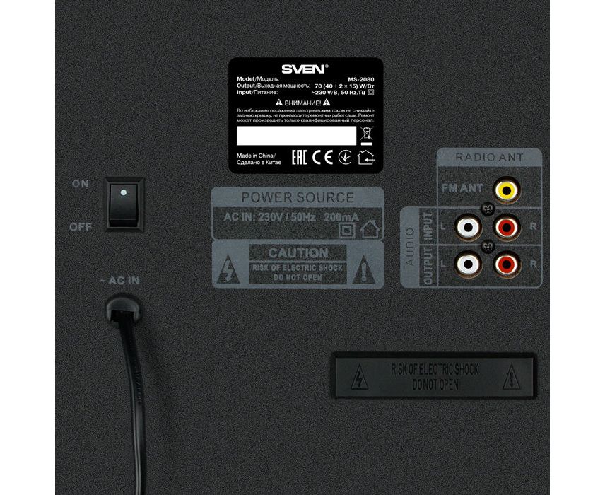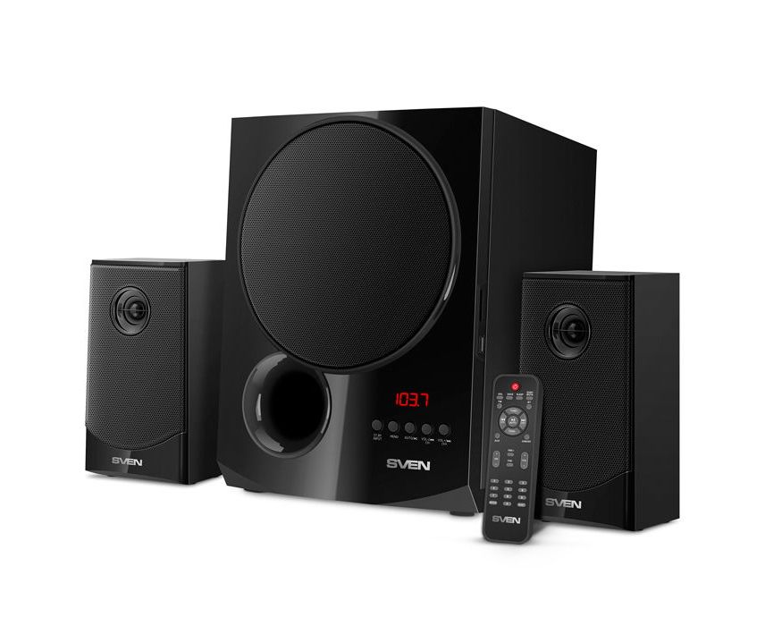 Акустическая система 2.1 SVEN АС MS-2080, черный (70 Вт, Bluetooth, пульт, дисплей, FM, USB, SD)