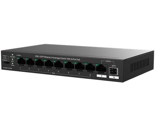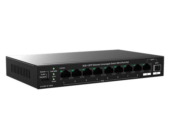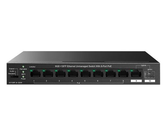 Коммутатор IP-COM G1110PF-8-120W неуправляемый PoE, 10 портов, 9x1 Гбит/с, SFP 1х1 Гбит/с, PoE 8х30 Вт (до 102 Вт)