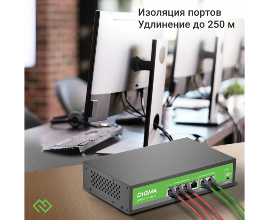 Коммутатор неуправляемый Digma DSP204F-2F-T80 V1 (L2) 6x100Мбит/с 4PoE 4PoE+ 80W