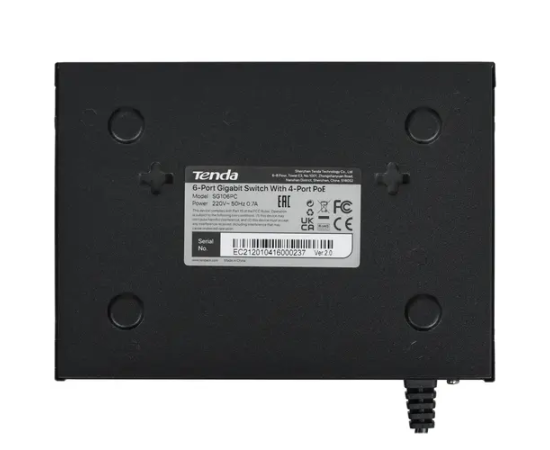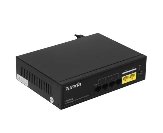 Коммутатор неуправляемый PoE Tenda SG106PC 6 портов, 6x1Гбит/с, PoE 4х до 30Вт, 2хUplink, настольный