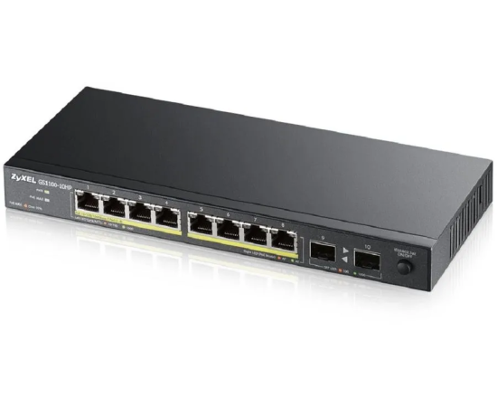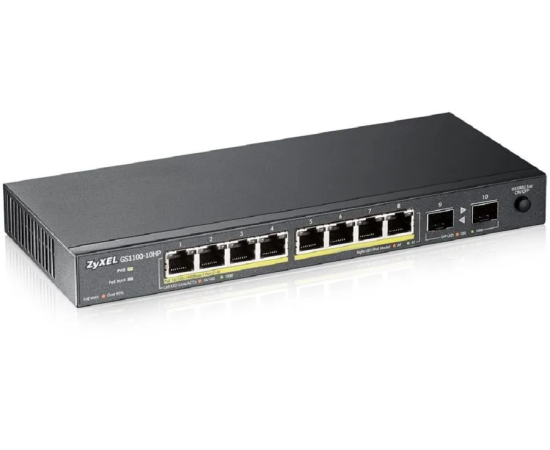 Коммутатор Zyxel GS1100-10HP v2 (GS1100-10HP-EU0102F) 8G 2SFP 8PoE+ 130W неуправляемый