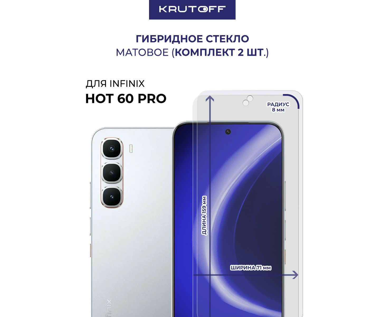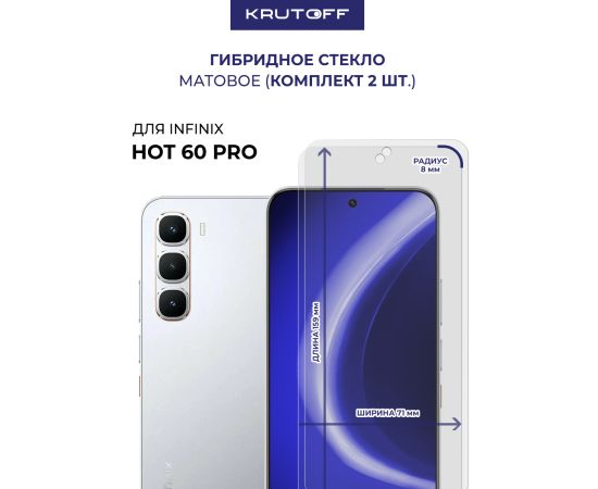 Комплект из 2-х защитных гибридных стекол МАТОВЫХ Krutoff для INFINIX Hot 60 Pro