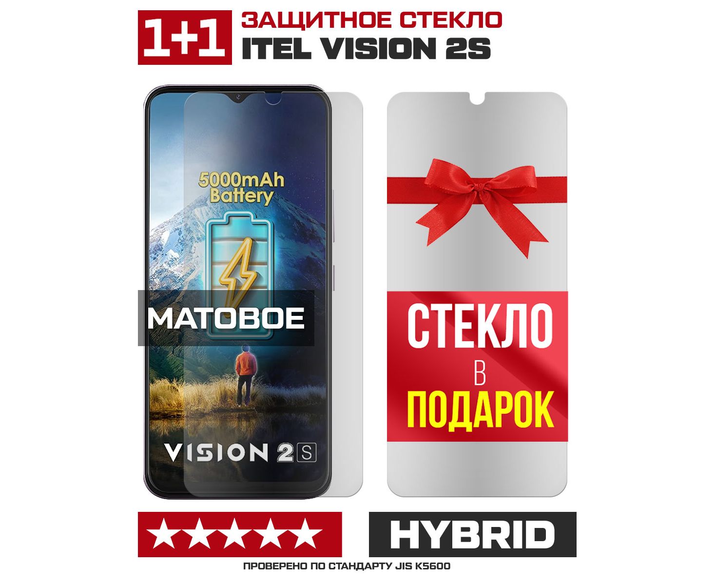 Комплект из 2-x защитных гибридных стекол МАТОВЫХ Krutoff для ITEL Vision 2S