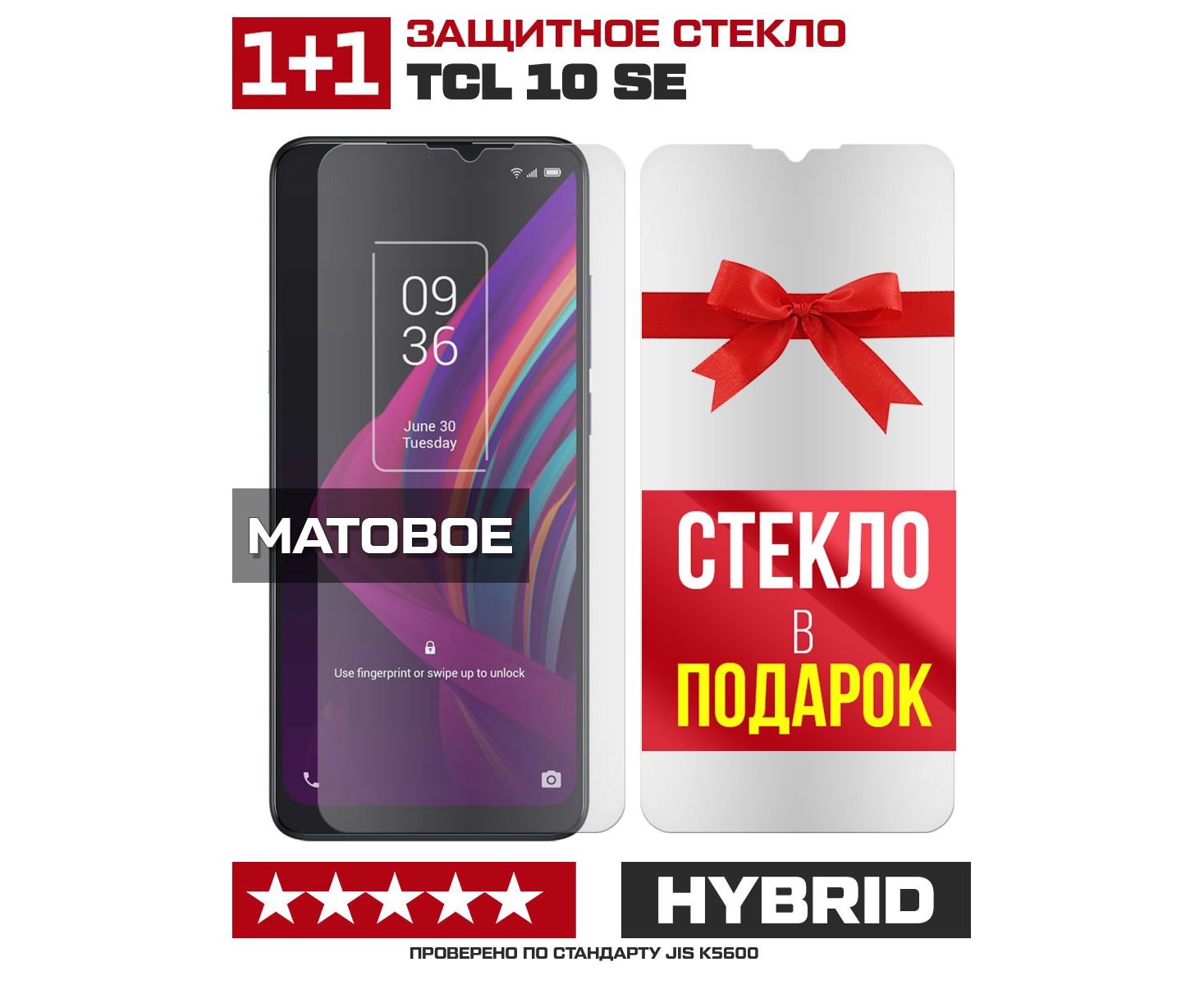 Комплект из 2-x защитных гибридных стекол МАТОВЫХ Krutoff для TCL 10 SE