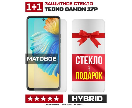 Комплект из 2-x защитных гибридных стекол МАТОВЫХ Krutoff для Tecno Camon 17P