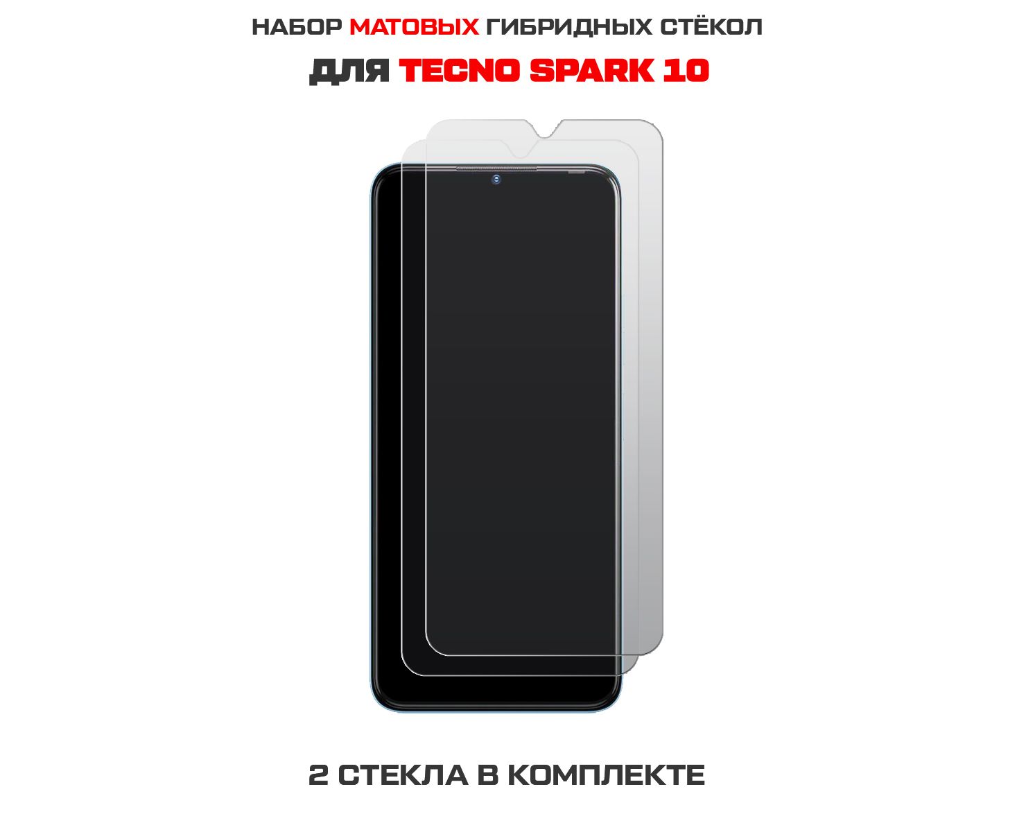Комплект из 2-x защитных гибридных стекол МАТОВЫХ Krutoff для Tecno Spark 10