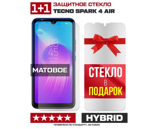 Комплект из 2-x защитных гибридных стекол МАТОВЫХ Krutoff для Tecno Spark 4 Air