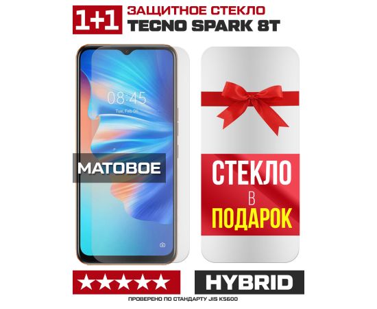 Комплект из 2-x защитных гибридных стекол МАТОВЫХ Krutoff для Tecno Spark 8T