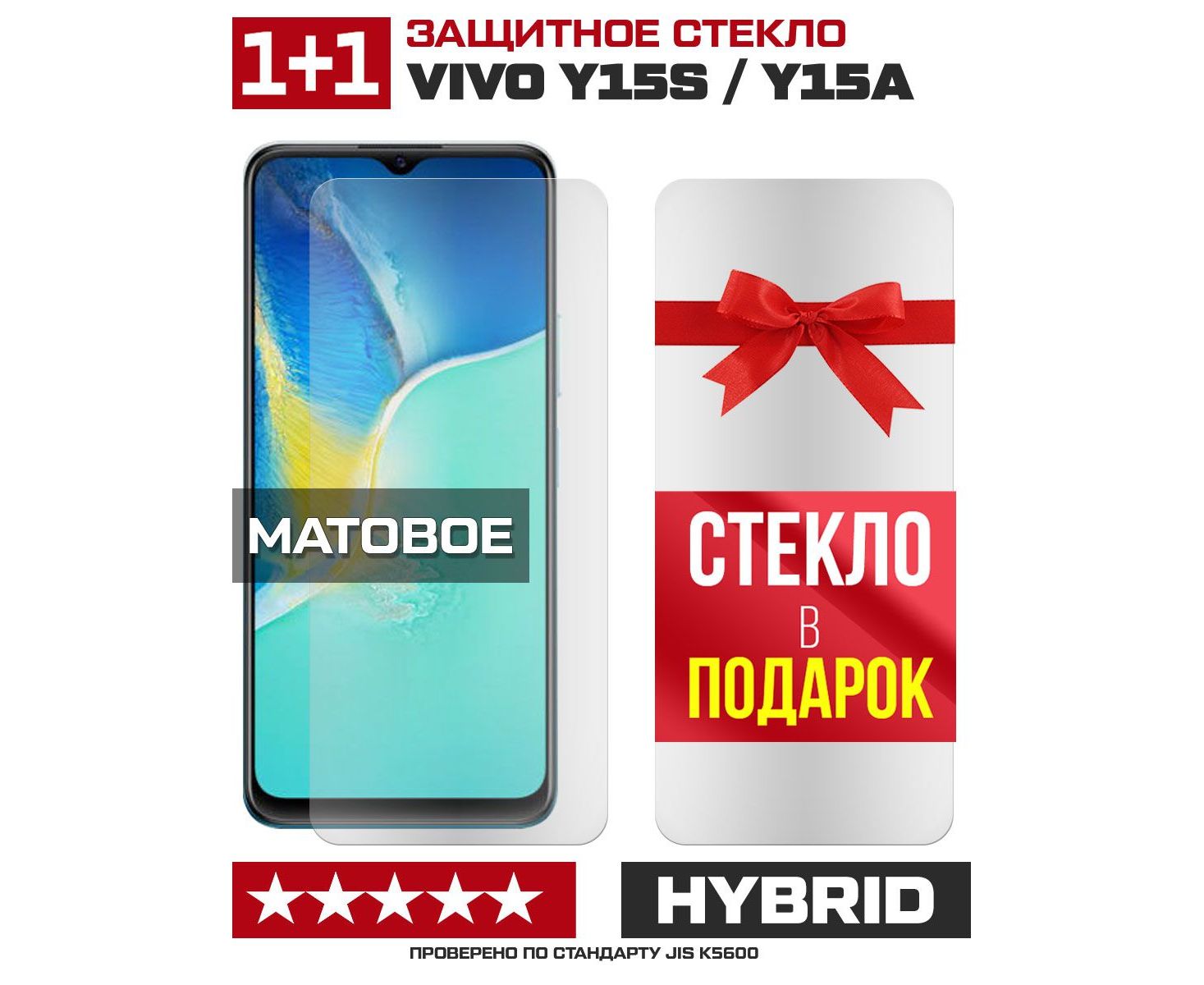 Комплект из 2-x защитных гибридных стекол МАТОВЫХ Krutoff для Vivo Y15s/Y15a