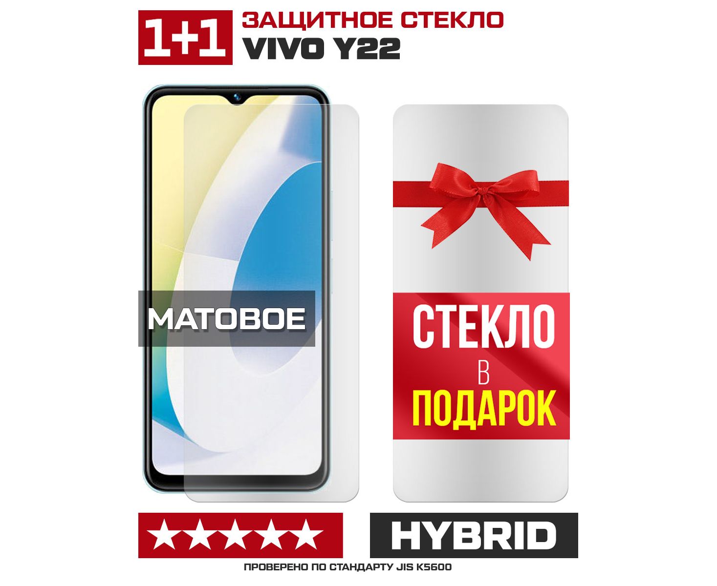 Комплект из 2-x защитных гибридных стекол МАТОВЫХ Krutoff для Vivo Y22