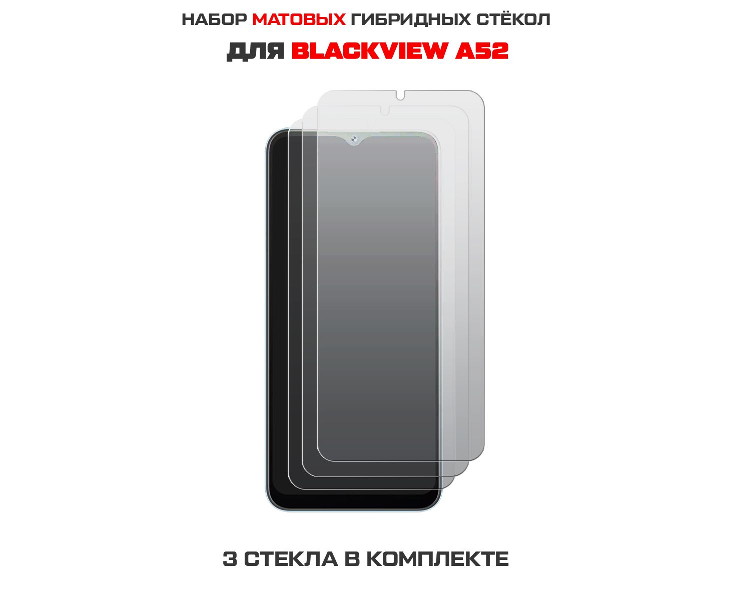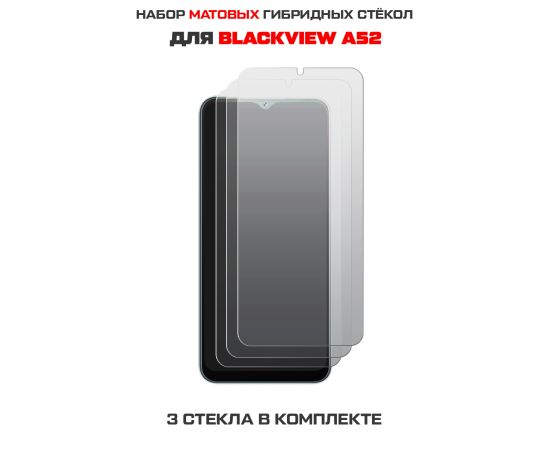 Комплект из 3-х защитных гибридных стекол МАТОВЫХ Krutoff для BlackView A52