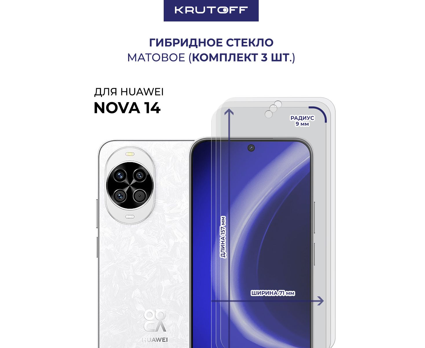 Комплект из 3-х защитных гибридных стекол МАТОВЫХ Krutoff для Huawei Nova 14