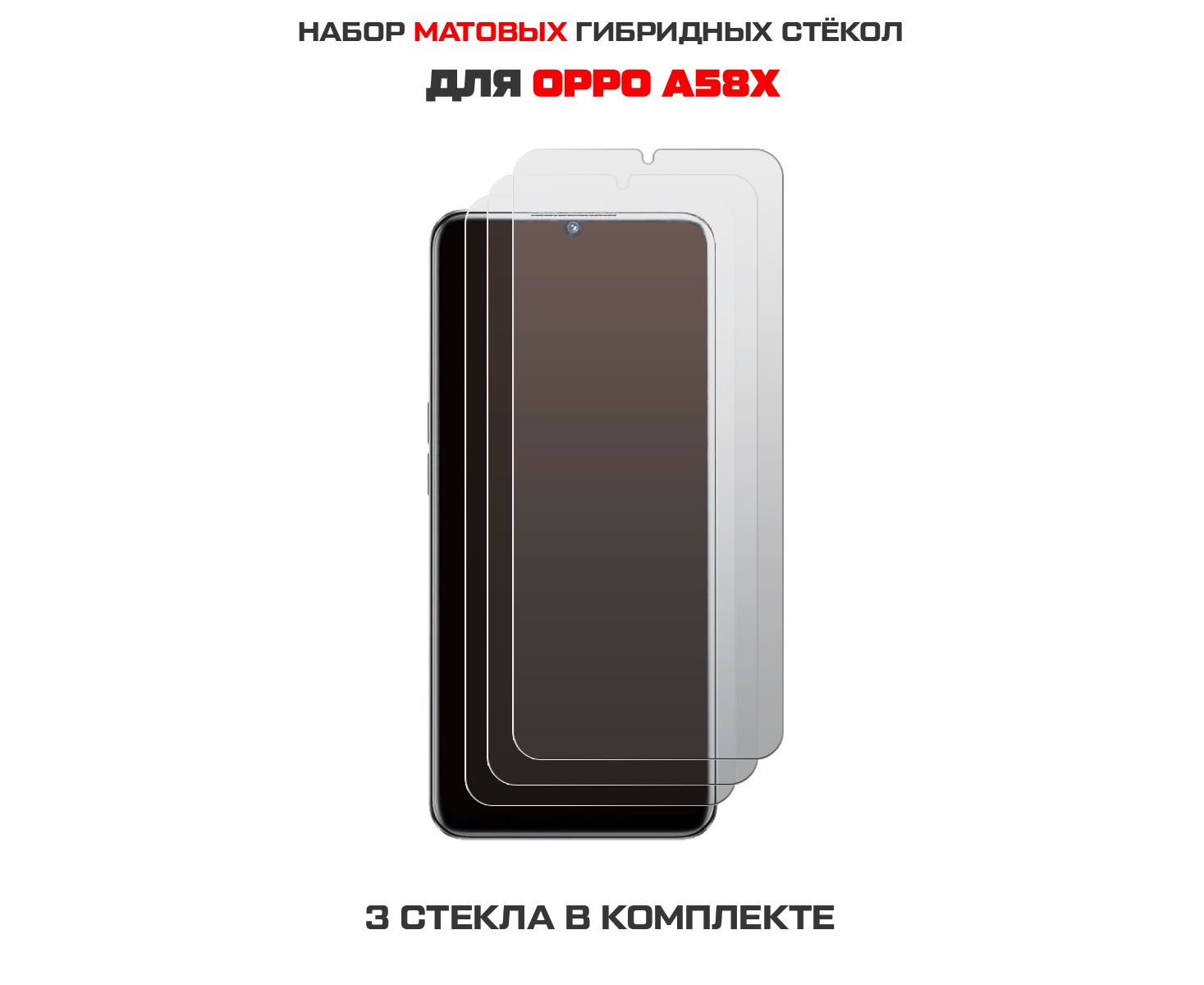 Комплект из 3-х защитных гибридных стекол МАТОВЫХ Krutoff для Oppo A58x