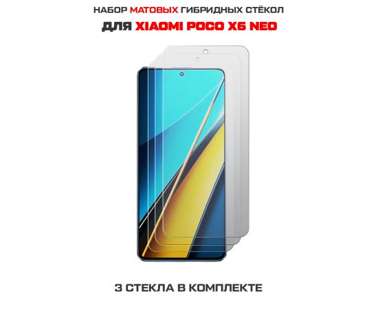 Комплект из 3-х защитных гибридных стекол МАТОВЫХ Krutoff для Xiaomi Poco X6 Neo