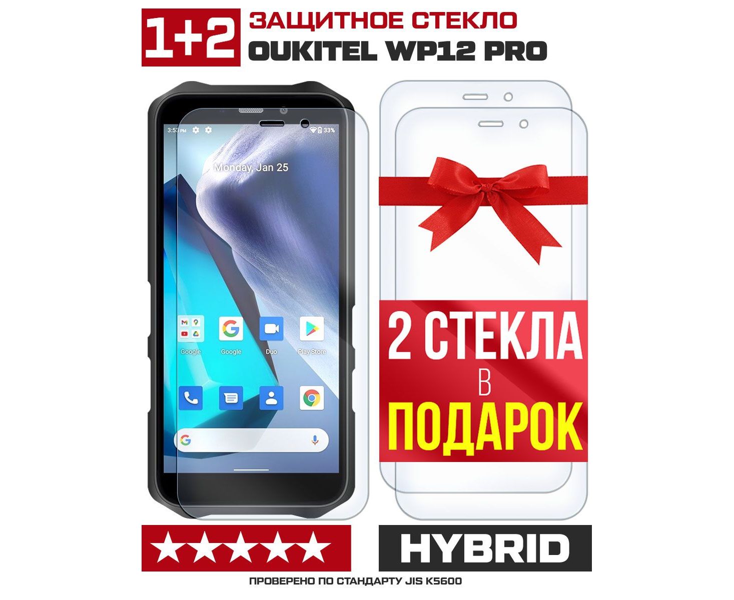 Комплект из 3-x защитных гибридных стекл для Oukitel WP12 Pro