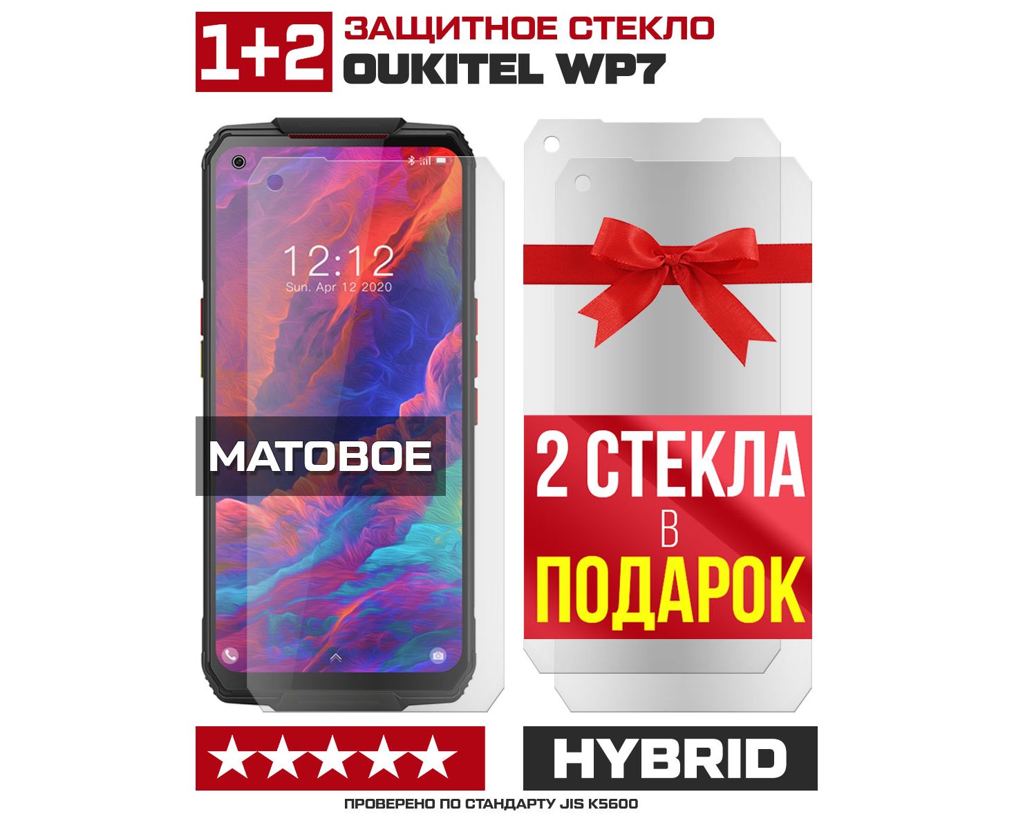 Комплект из 3-x защитных гибридных стекол МАТОВЫХ Krutoff для Oukitel WP7
