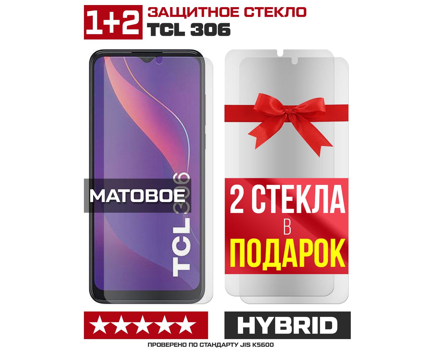 Комплект из 3-x защитных гибридных стекол МАТОВЫХ Krutoff для TCL 306