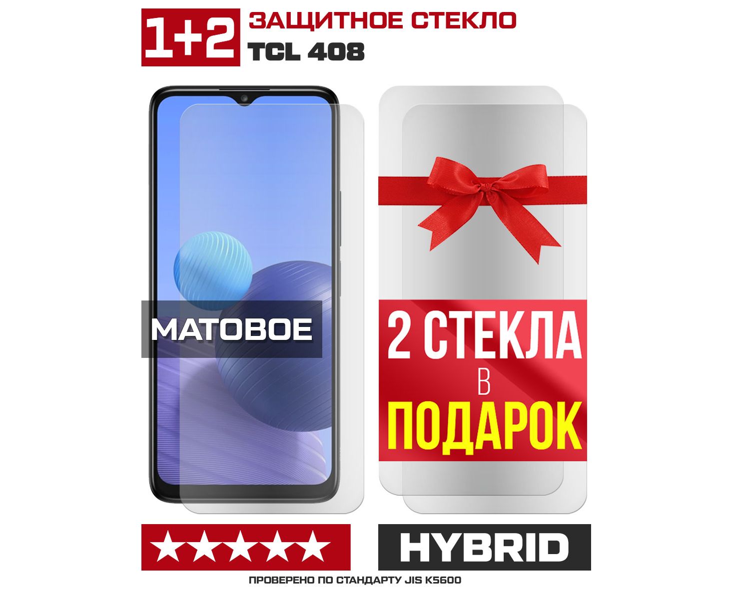 Комплект из 3-x защитных гибридных стекол МАТОВЫХ Krutoff для TCL 408