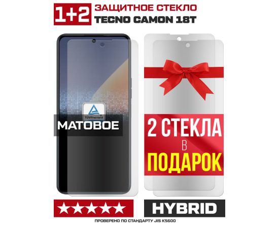 Комплект из 3-x защитных гибридных стекол МАТОВЫХ Krutoff для Tecno Camon 18T