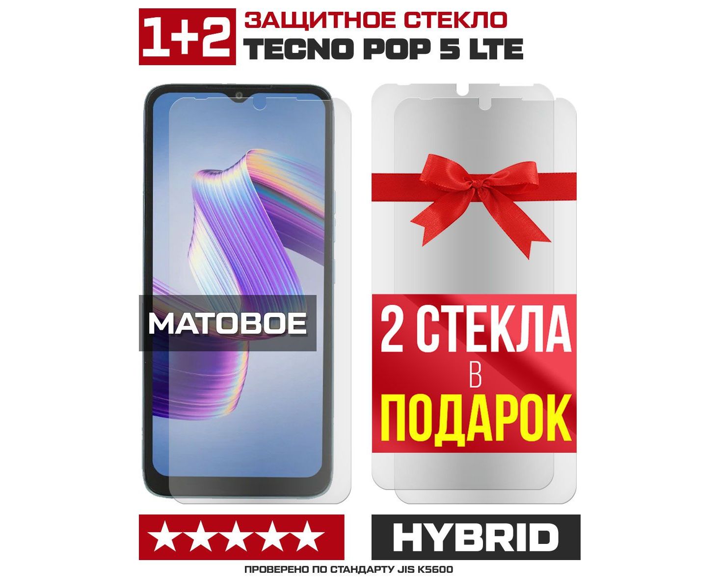 Комплект из 3-x защитных гибридных стекол МАТОВЫХ Krutoff для Tecno POP 5 LTE