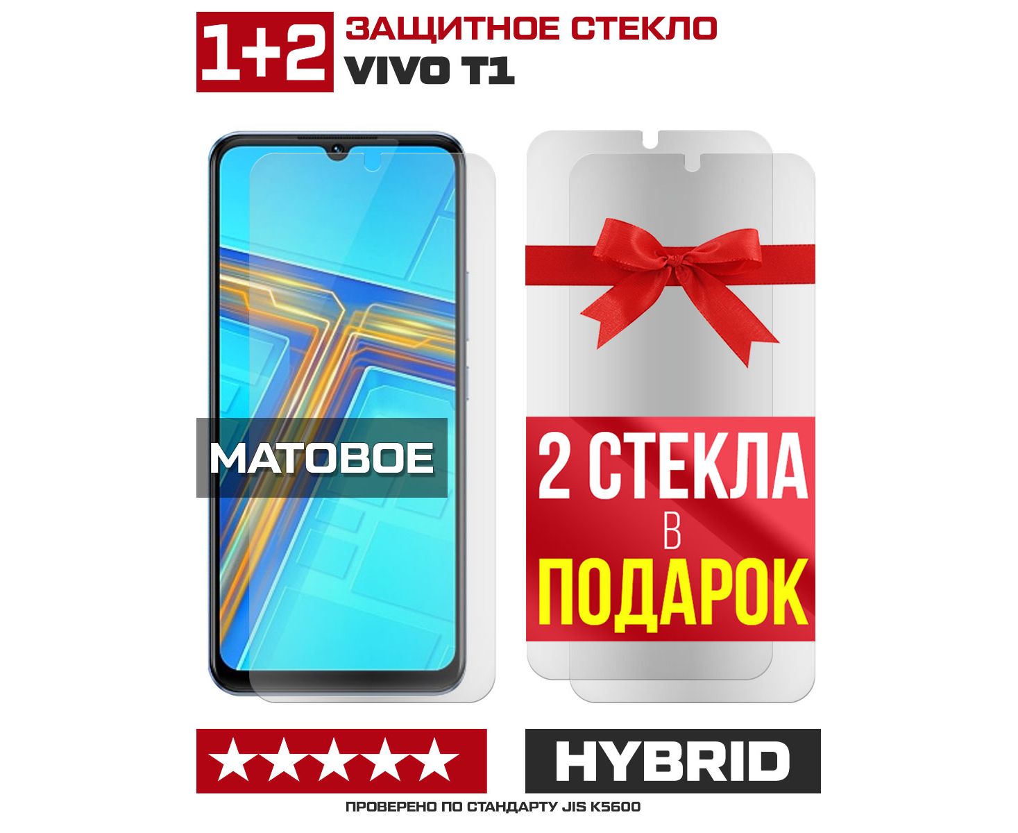 Комплект из 3-x защитных гибридных стекол МАТОВЫХ Krutoff для Vivo T1