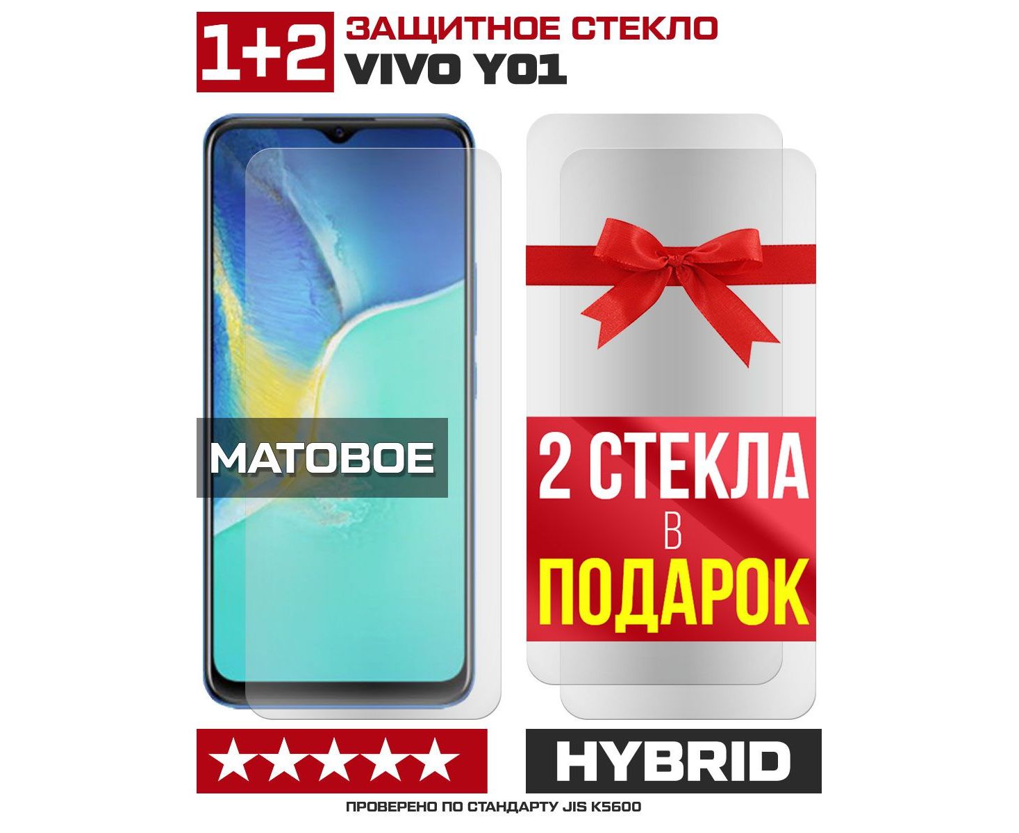 Комплект из 3-x защитных гибридных стекол МАТОВЫХ Krutoff для Vivo Y01