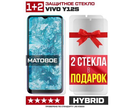 Комплект из 3-x защитных гибридных стекол МАТОВЫХ Krutoff для Vivo Y12s