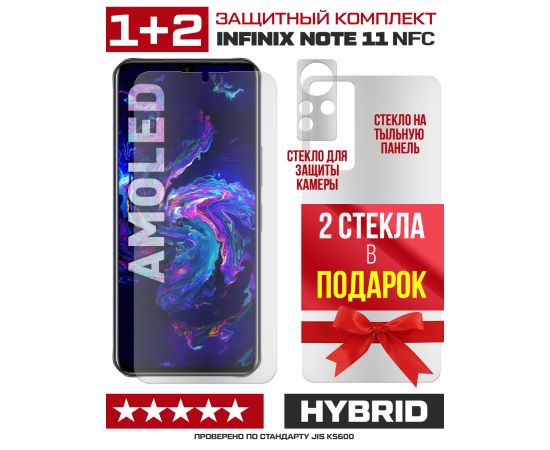 Комплект из защитных гибридное стекол МАТОВЫХ Krutoff для INFINIX Note 11 NFC перед / зад / камера (2 шт.)