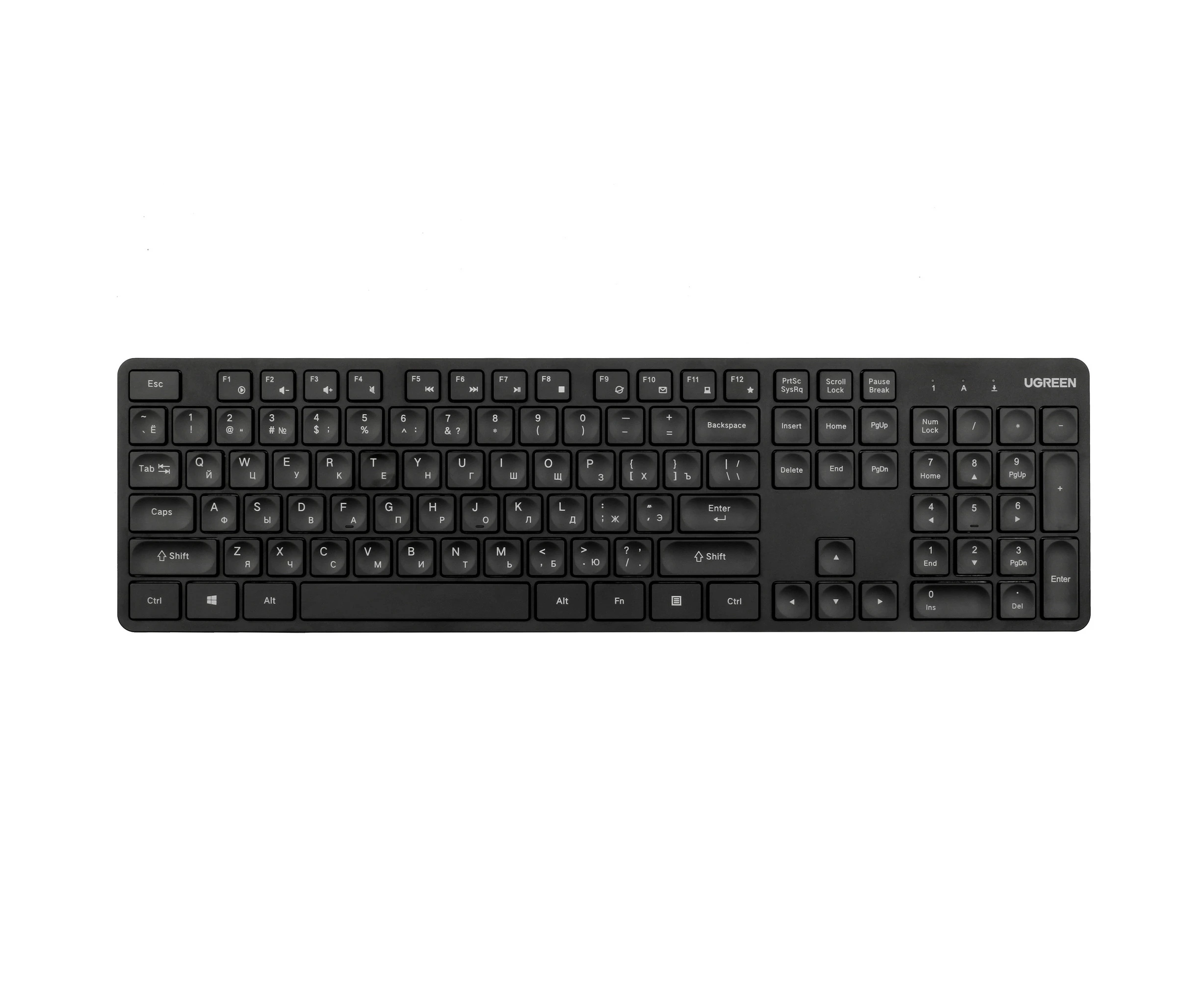 Комплект беспроводная клавиатура и беспроводная мышка UGREEN MK004 (35744) 2.4 GHz Wireless Keyboard 15219 and Wireless Mouse 90372 Set. Цвет: черный