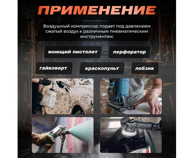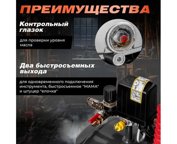 прорезиненные колеса и ручка на ресивере для удобства транспортировки.