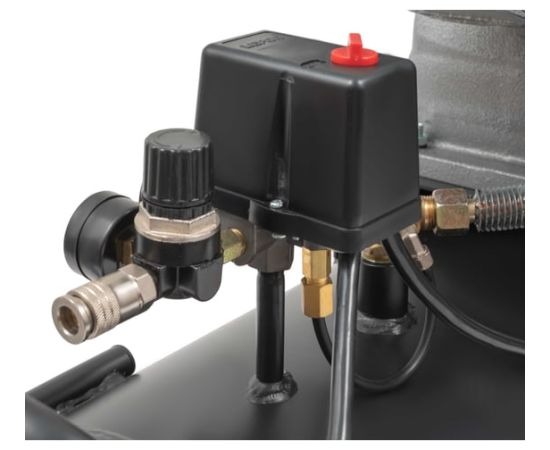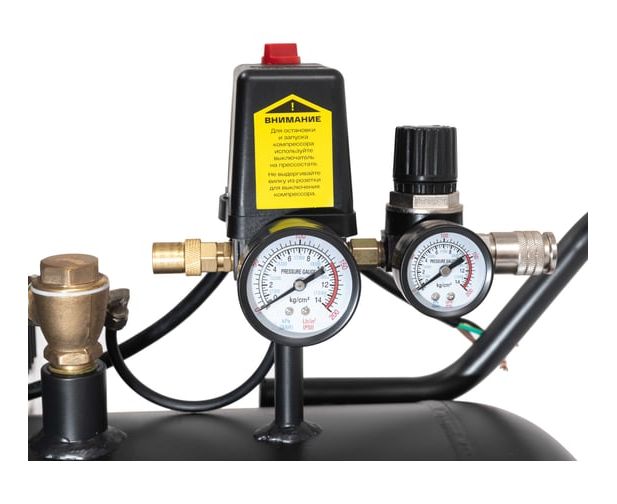 Визуальный контроль - наличие двух встроенных манометров позволяет визуально контролировать давление внутри ресивера и на выходе из него.