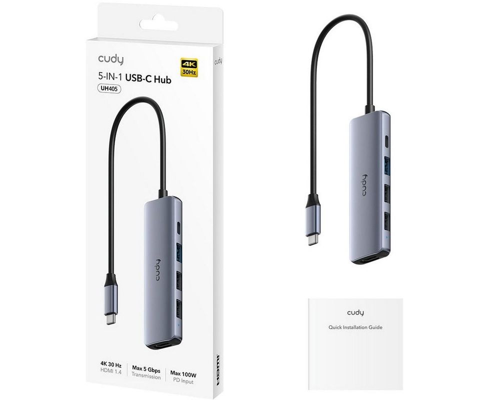 Концентратор Cudy UH405 USB-C 5 в 1 с портом HDMI (4K)