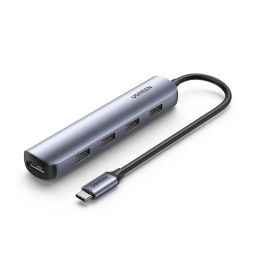 Адаптер UGreen CM417 (20197) USB-C to 4*USB 3.0+HDMI Adapter серый