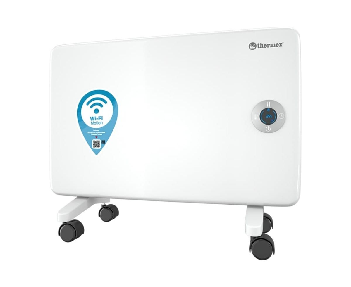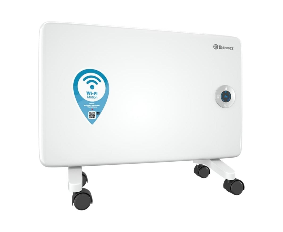 Модель имеет электронную панель управления, которая позволяет отрегулировать мощность или температуру нагрева, установить таймер и выключить/включить прибор. Помимо этого конвектор оснащен фирменной технологией беспроводного управления Wi-Fi Motion для дистанционной настройки прибора.