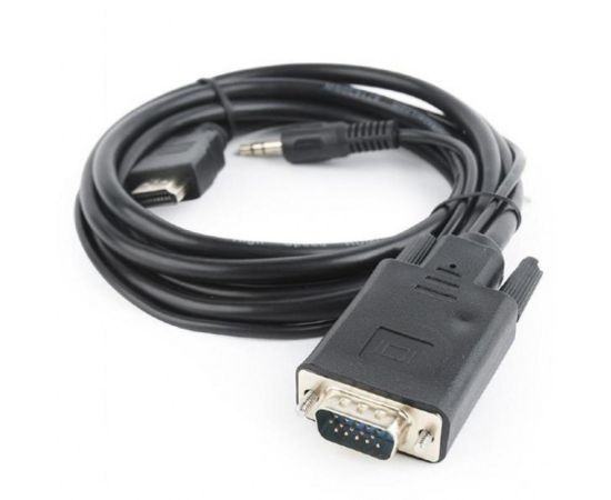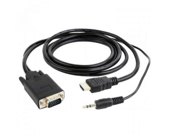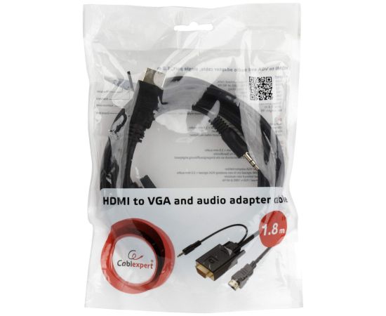 Конвертер HDMI-1.4a (папа) - D-SUB/VGA (папа) + Audio stereo (mini-jack 3.5 mm), встр. кабель 1,8 м, чёрный, позол. разъёмы, Cablexpert A-HDMI-VGA-03-6