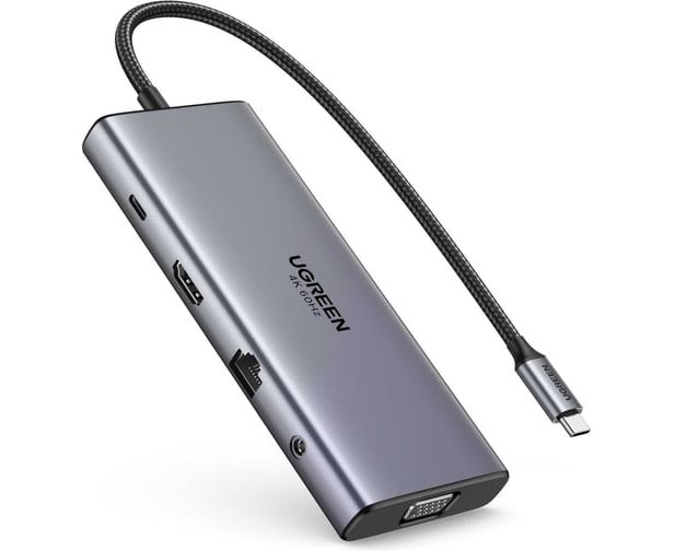 Конвертер UGREEN CM639 (45520) 11-in-1 4K 60Hz 2xUSB-C 3.2+USB-A 3.2+USB-A 3.0+HDMI+VGA+RJ45 Gigabit+SD/TF+AUX3.5mm+PD Converter серый