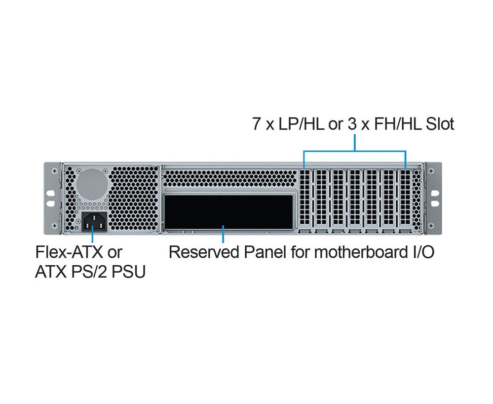 Корпус Ablecom CS-R27S-05P 2U chassis, ATX, Micro-ATX, Mini-ITX MBs, 2 x 3.5''hs + 3.5'' internal 1 2.5'' flex 500W, no rails