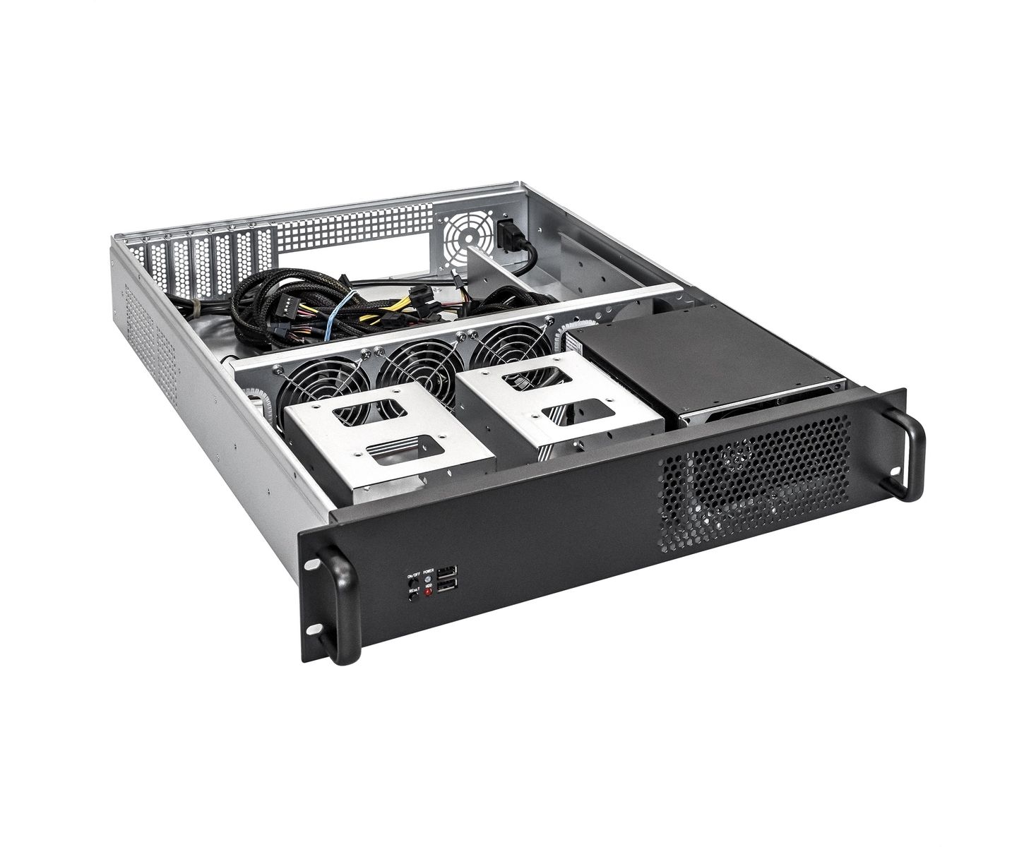 Установленные вентиляторы 3 x 8 см (на перегородке)