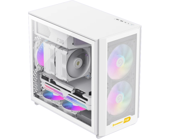 Корпус GameMax F36 WH без БП (Midi Tower, ATX, Белый, 1*USB Type-C, 3*120мм)