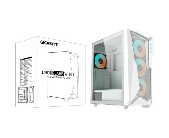 Корпус Gigabyte C301 Glass White (GB-C301GW) MidTower, ATX, USB-C x1, USB3.0 x2, Audio I/O, GPU 400mm, TG