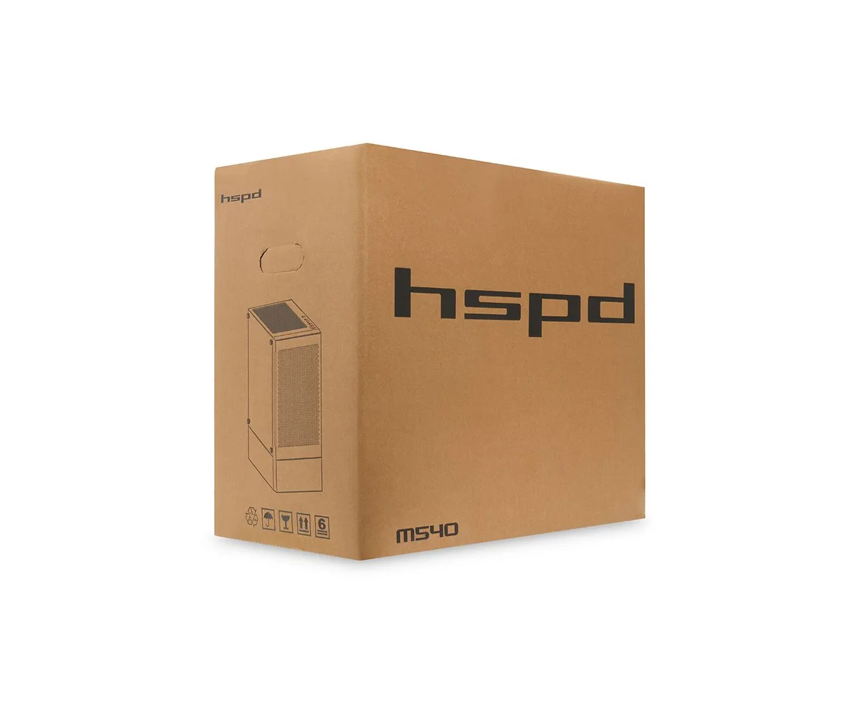 Корпус HSPD M540 (M540-TGBK), без БП, Mesh Mid Tower, Black, TG, 0.45 SPCC, no fans, ATX, mITX, 160/300/150mm, 2x2.5", 7xPCI, 1xUSB-A 3.0
